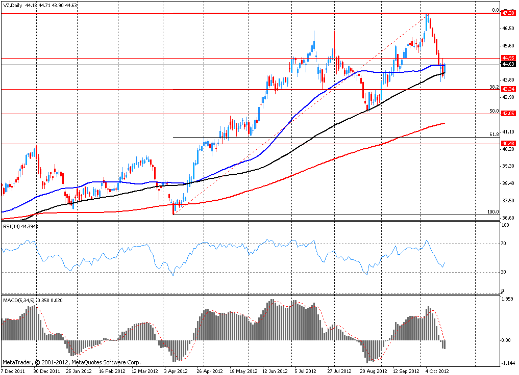 Акции VZ в начале октября установили исторический максиму, достигнув отметки $47,30 после чего отступили.