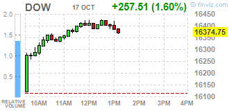 Все компоненты индекса DOW торгуются в плюсовой зоне (30 из 30). Сильнее остальных выросли акции American Express Company (АХР, +4.45%).