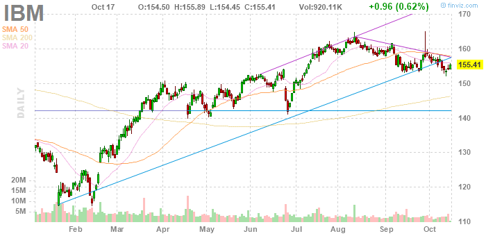 На текущий момент акции International Business Machines Corporation (IBM) котируются по $155,41 (+0,62%)
