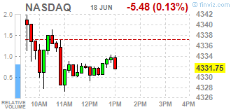 Фондовые индексы США немного ниже нуля после небольшого трехдневного роста индекса S&P 500. Катализатором динамки является падение акций компании ConAgra Foods (CAG) на фоне снижения прогноза по прибыли компании, рост акций корпорации FedEx (FDX) после публикации квартального отчета компании. Инвесторы также не проявляют большой активности, так как ожидают решения по кредитно-денежной политике Федеральной резервной системы.