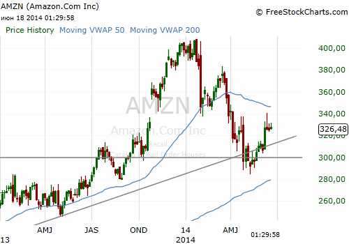 На текущий момент акции Amazon (AMZN) котируются по $326.19 (+0,18%)
