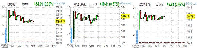 Позитивное начало торгов обеспечили данные по рынку жилья США, а также снижение опасений инвесторов относительно планов властей Кипра ввести налог на депозиты.