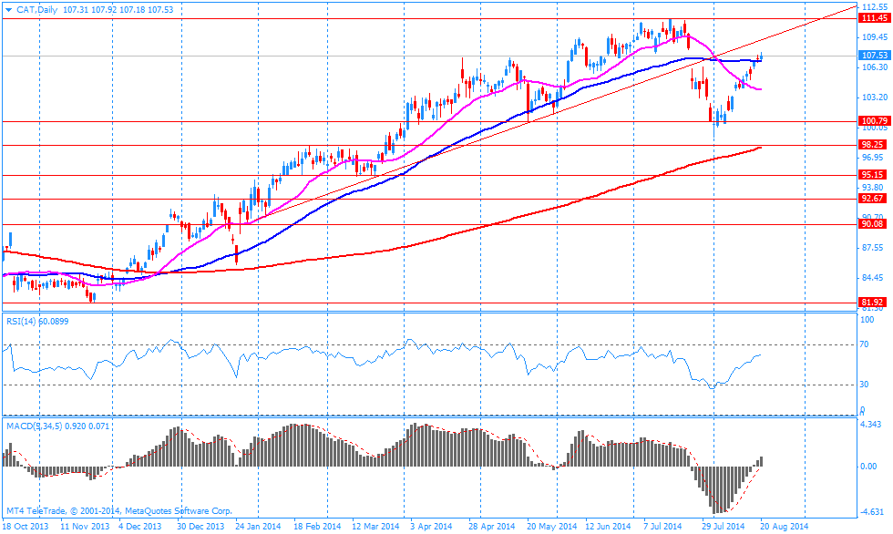 Акции CAT в данный момент торгуются по $107.53 (+0.17%).