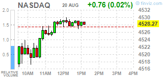 Большинство компонентов индекса DOW демонстрируют рост (17 из 30). Аутсайдером являются акции Microsoft Corporation (MSFT, -0.54%). Больше остальных выросли акции The Home Depot, Inc. (HD, +2.27%) на фоне вчерашнего хорошего отчета за второй квартал.