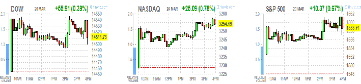 Фондовые индексы США выросли, прервав трехдневное снижения индекса «широкого рынка» S&P 500, после того, как ФРС США заявила, что продолжит покупать казначейские облигации и ипотечные ценные бумаги текущими темпами, и понизила прогнозы по безработице и ВВП.