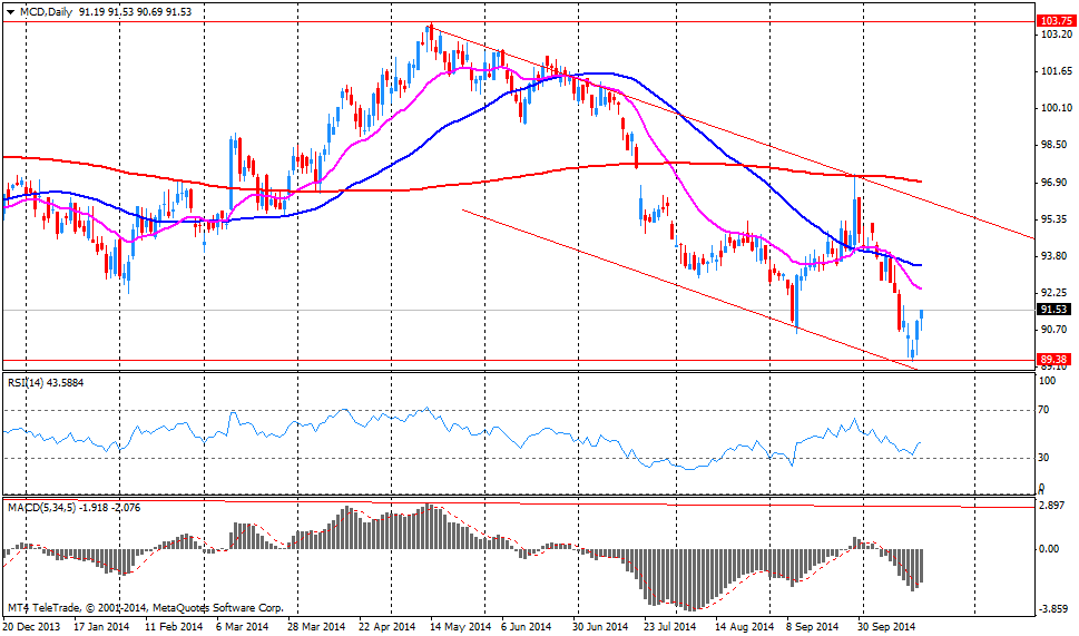 На динамику сегодняшних торгов повлияли данные по ВВП Китая. Рост ВВП Китая в третьем квартале 2014 года составил 7,3%. Темп роста ВВП по сравнению со 2-м кварталом замедлился. Это означает, что основной показатель экономики Китая за 2014 год в целом достигнет нижней части установленного правительством целевого района, составляющего 7,5%. Это также означает увеличение давления на руководство страны в сторону принятия целевых мер стимулирования экономики в 4-м квартале.