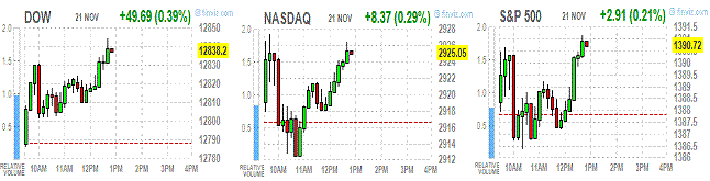 Рост индексов по прежнему сдерживает отсутствие прогресса в решение двух остальных вопросов, на которых, кроме обострения ситуации на Ближнем Востоке, сосредоточено внимание участников рынка, а именно: “фискальный обрыв” в США и выделение очередного транша финпомощи Греции.