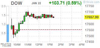 Компоненты индекса DOW преимущественно выросли в цене (23 из 30). Аутсайдером являются акции American Express Company (AXP, -3.47%). Больше остальных выросли акции JPMorgan Chase & Co. (JPM, +2.09%).