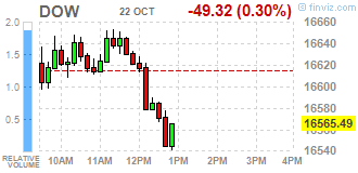 Компоненты индекса DOW торгуются разнонаправленно. Аутсайдером являются акции The Boeing Company (ВА, -3.02%) из-за слабого квартального отчета. Больше остальных выросли акции The Travelers Companies, Inc. (TRV, +1.87%).