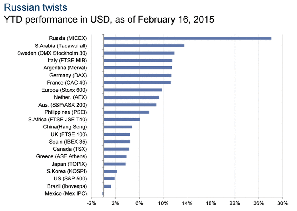 Майк Бирд, эксперт Businessinsider, пишет: "Это звучит довольно странно для большинства людей, которые следят на финансовыми и международными новостями, но российский фондовый рынок является самых "эффективным" в мире (с начала 2015 года и до сих пор)".