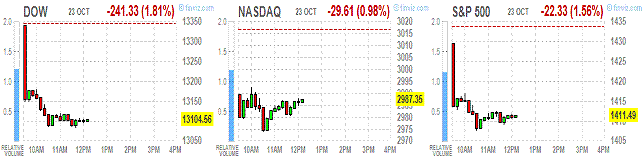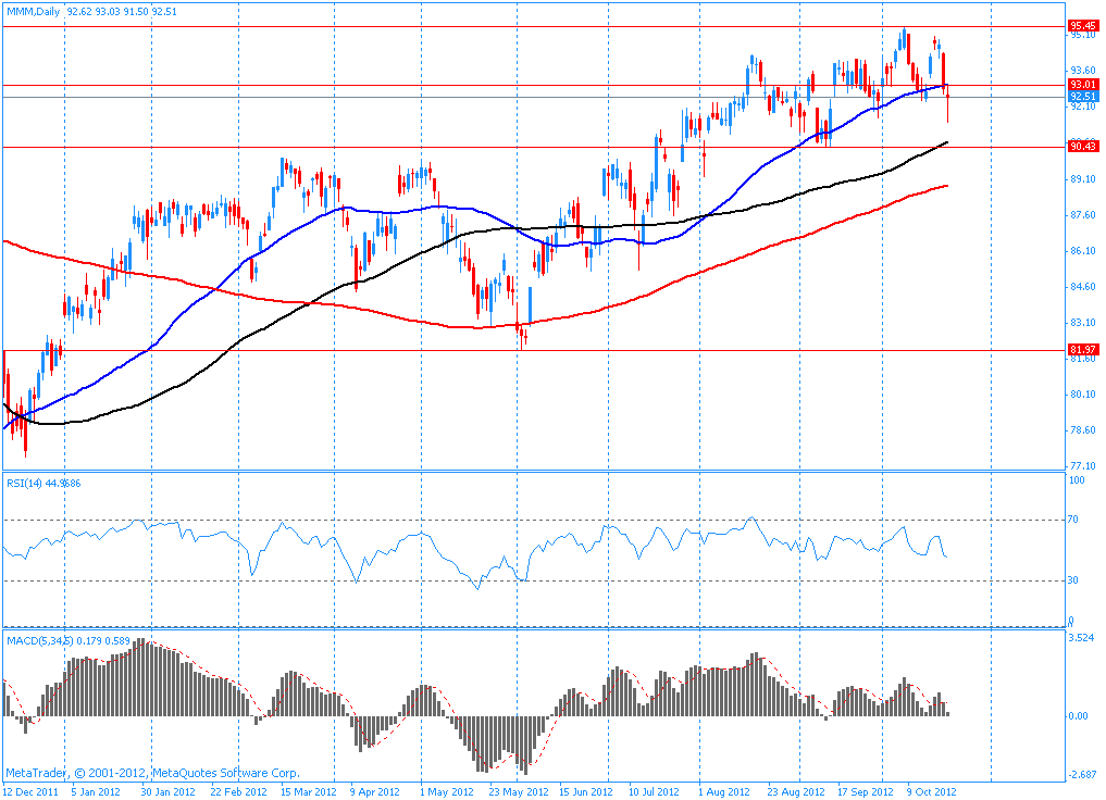 Сегодня до начала регулярной сессии финансовые отчеты за 3-й квартал опубликовали 3M (MMM), DuPont (DD) и United Technologies (UTX). Отчеты данных гигантов оказались достаточно слабыми по сравнению с прогнозами. Особенно негативно участники рынка восприняли понижение прогнозов на полный 2012 финансовый год, что сделали все три выше указанные компании.