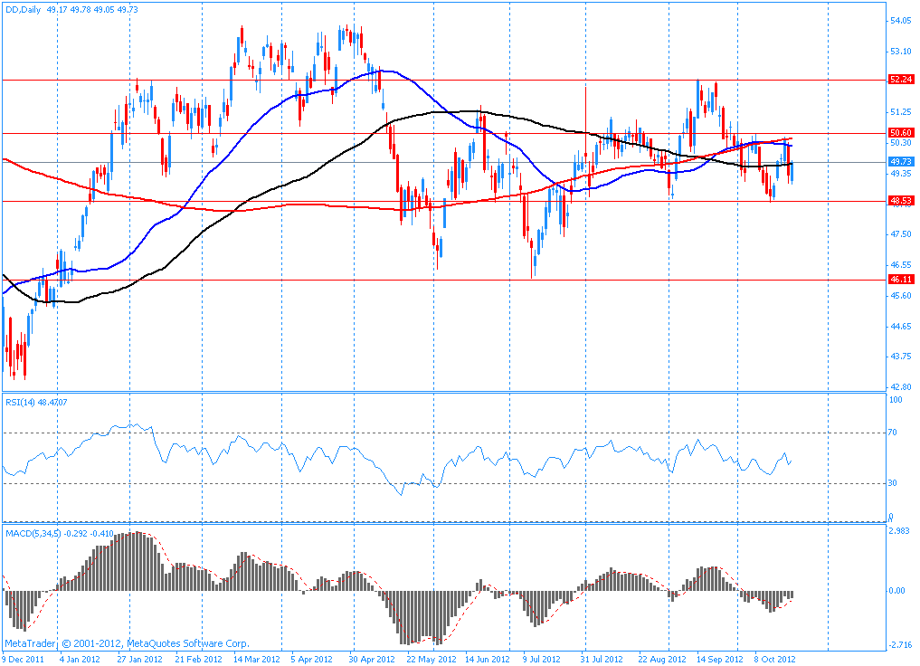 Акции DD на премаркете упали ниже уровня минимумов августа, сентября и октября ($48,50). В случае отката данная область будет сопротивлением.