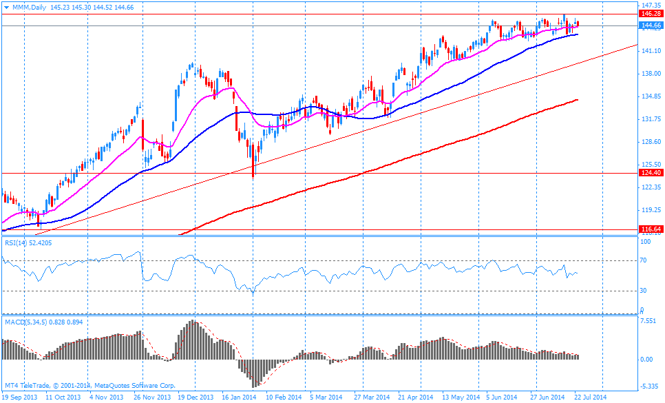 Акции MMM на премаркете выросли до уровня $146.00 (+0.91%).