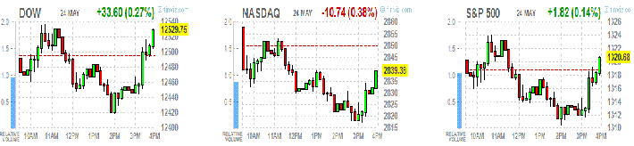 Из хорошего, в США, согласно окончательным данным, потребительское доверие выросло в мае, но неугасающий европейский кризис ограничивает рост рынка. На этот раз плохие новости пришли из Испании, где Каталония, самый благополучный регион страны, обратился за помощью к правительству о рефинансировании долга. В этом году правительству региона предстоит рефинансировать долг на сумму более 13 млрд евро. К тому же, в начале мая рейтинговое агентство S&P урезало кредитный рейтинг каталонских долговых бумаг на 4 ступени до BBB-. Кроме этого, в Испании были приостановлены торги акциями Bankia в преддверии одобрения плана рекапитализации банка.