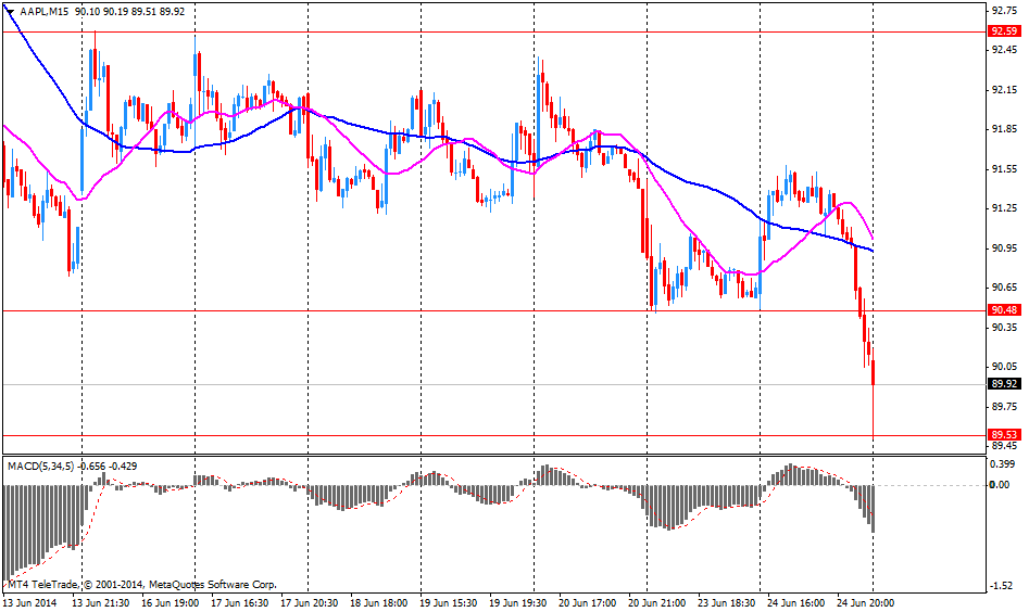 Акции AAPL на текущий момент торгуются по $89.92 (-0.17%).
