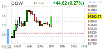 Компоненты индекса DOW торгуются разнонаправленно (13 в минусе против 17 в плюсе). Наибольшее падение демонстрирует Boeing Co. (VZ, -2.13%). Лидируют акции Merck & Co. Inc. (MRK, +2.35%).