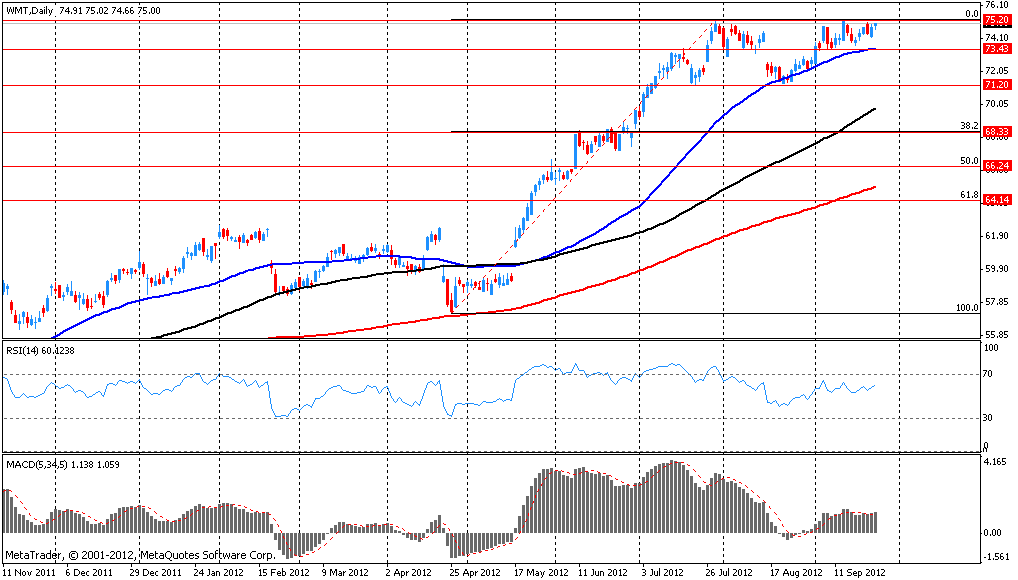В составе индекса DOW немного большее половины компонентов находятся в плюсе. Больше остальных выросли в цене акции Pfizer Inc (PFE, +1.20%). Максимальные потери несут акции Hewlett-Packard Company (HPQ, -2.27%).