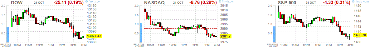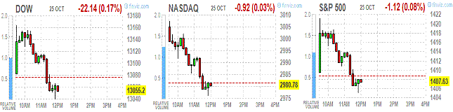 Dow -25.11 13,077.42 -0.19%Nasdaq -8.76 2,981.70 -0.29%