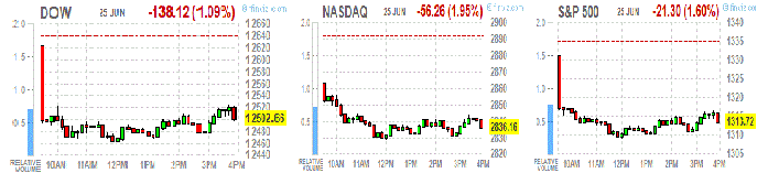Большинство европейских фондовых индексов снизились на опасениях касательно того, что в ходе саммита ЕС, назначенного на 28-29 июня, лидеры стран не примут каких-либо решительных действий по борьбе с кризисом в регионе.