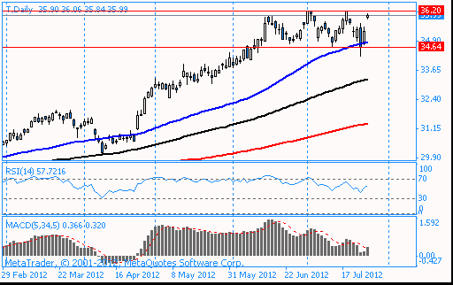 На текущий момент:В данный момент акции торгуются по $35,99 (+1,90%). Область 4-х летнего максимума $36,20, который был достигнут в июле, может стать преградой на пути дальнейшего роста.