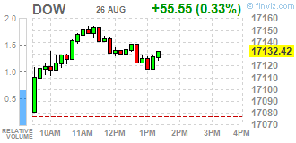 Большинство компонентов индекса DOW демонстрируют рост (20 из 30). Аутсайдером являются акции General Electric Company (GE, -0.55%). Больше остальных выросли акции Exxon Mobil Corporation (XOM, +1.11%).