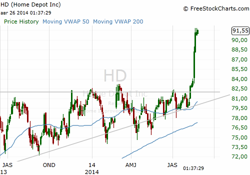 На текущий момент акции Home Depot (HD) котируются по $91.49 (+0,31%)
