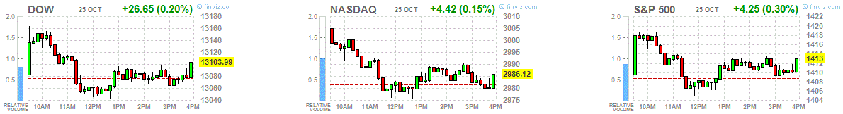 Индексы начали сессию ростом благодаря сильным квартальным отчетам ряда компаний, но в ходе торгов снизились, что в конечном итоге не помешало завершить сессию в плюсе.