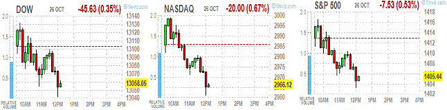 Индексы начали сессию ростом благодаря сильным данным по ВВП США за 3-й квартал. Однако, позже были опубликованы окончательные данные по индексу потребительских настроений от Reuters/Michigan за октябрь. Предварительное значение показателя было пересмотрено до 82.6 пункта против 83.1 и прогноза 82.7.