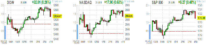 Как показала вышедшая статистика, индекс незавершенных сделок по продаже домов в мае увеличился на 5,9% м/м при средних прогнозах роста на 1,0% - первое изменение со знаком "плюс" за 3 месяца. Далее, заказы на товары длительного пользования за тот же месяц возросли в объеме на 1,1%, опять же существенно сильнее средних прогнозов. Корпоративные новости сегодня также сыграли в пользу покупок, в т.ч., удачная отчетность Monsanto.