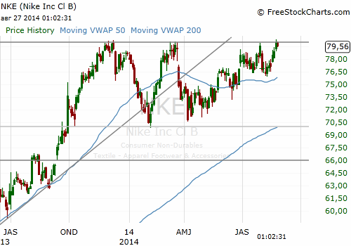 На текущий момент акции Nike (NKE) котируются по $79.62 (+0,18%)