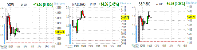 Stoxx Europe 600 Index прибавил 0,4% до 271,83. Европейские акции выросли на 8,2% до сих пор в этом квартале, и направляются к крупнейшему ежеквартальному росту с 2009 года. Индекс вырос на 16% от самого низкого уровня в этом году, который был зафиксирован 4 июня после того, как Европейский центральный банк согласился на неограниченный объем покупки активов, а Федеральная резервная система объявила третий раунд количественного смягчения.