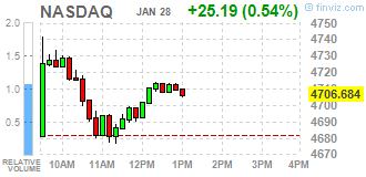 Nasdaq 4,706.19 +24.69 +0.53%