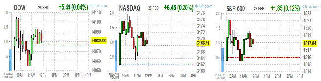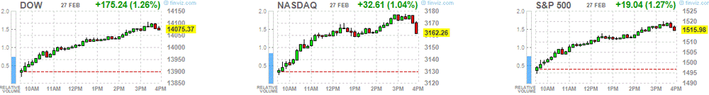 Индексы росли на фоне вышедших данных по рынку жилья США. Как показал опубликованный отчет Национальной ассоциации риэлторов, незавершенные сделки по продаже жилья в январе выросли на 4,5%, индекс достиг уровня 109,5 пункта - максимум с апреля 2010 года.