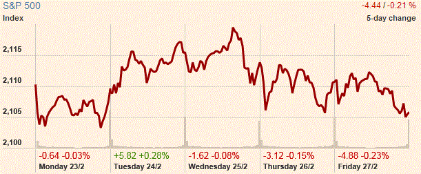 В отраслевом разрезе все сектора индекса S&P за период 23 - 27 февраля включительно показали смешанную динамику. Наибольший рост зафиксировал сектор потребительских товаров (+0,5%) и сектор здравоохранения (+0,5%). Больше всех снизился сектор коммунальных услуг (-0,7%).