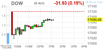 Большинство компонентов индекса DOW демонстрируют падение (19 из 30). Аутсайдером являются акции Nike, Inc. (NKE, -0.94%). Больше остальных выросли акции E. I. du Pont de Nemours and Company (DD, +0.47%).