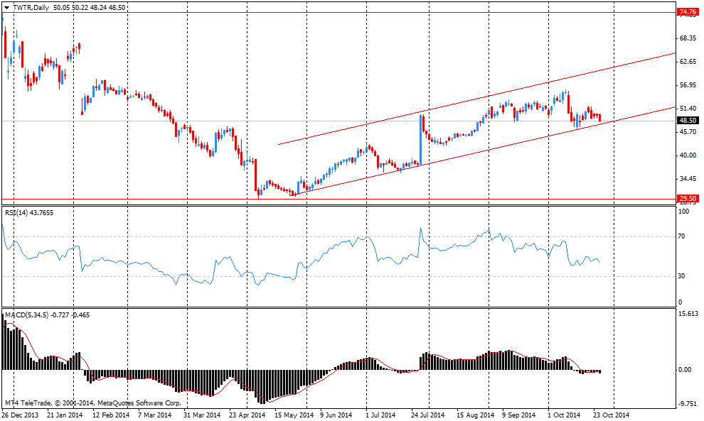 Аналитики RBC Capital Mkts понизили рейтинг акций Twitter (TWTR) до "на уровне рынка" с "лучше рынка", целевая стоимость понижена до $47 с $65
