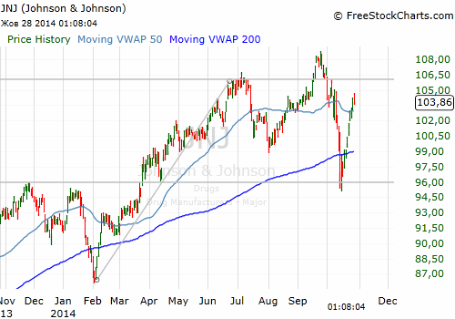 На текущий момент акции Johnson & Johnson (JNJ) котируются по $103.74 (-0.32%)