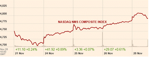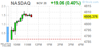Основные фондовые индексы США немного выросли. Акции энергетических компаний обвалились после падения цены на нефть до четырехлетнего минимума на фоне отказа ОПЕК от снижения квот на добычу черного золота. Падение энергетиков компенсировал рост компаний розничной торговли, так как американские покупатели создают ажиотаж в магазинах сегодня, в "черную пятницу".