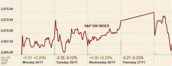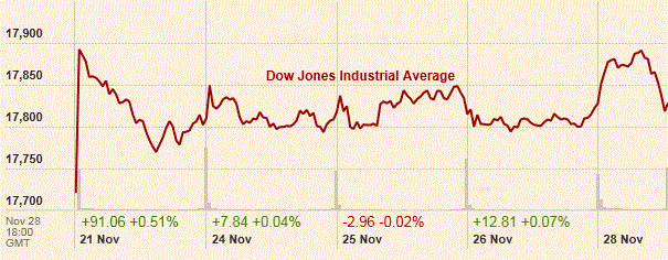 В сокращенную сессию пятницы основные фондовые индексы США незначительно изменились. Акции энергетических компаний обвалились после падения цены на нефть до четырехлетнего минимума на фоне отказа ОПЕК от снижения квот на добычу черного золота. Падение энергетиков компенсировал рост компаний розничной торговли, так как американские покупатели создают ажиотаж в магазинах в "черную пятницу". Как отмечают в Федерации розничной торговли США, в этом году в "черную пятницу" и следующие за ней выходные магазины посетят более 140 миллионов покупателей, которые в среднем потратят на покупки порядка $300. Также в федерации ожидают, что в текущем году расходы потребителей, которые они потратят в этот период, вырастут на 4.1% по сравнению с прошлым годом и достигнут $616.9 млрд. Онлайн продажи, как ожидается, покажут еще более значительный рост, который может составить от 8 до 15 процентов.