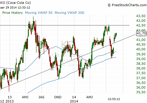 На текущий момент акции Coca-Cola (KO) котируются по $41.67 (+0,10%)