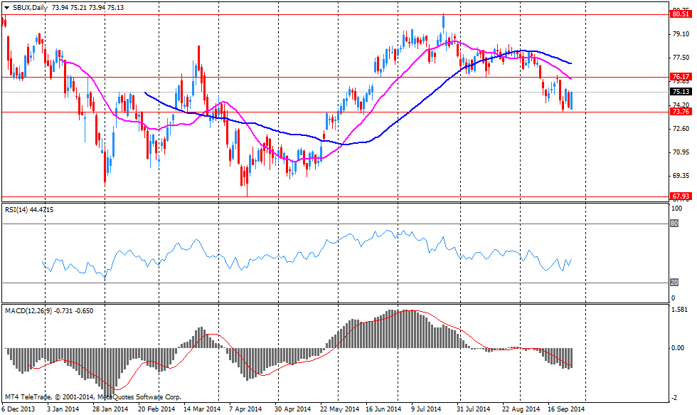Акции UBS AG выросли в цене на 0,85%. Швейцарский банк, объявивший тендер на обмен акций UBS AG на акции холдинговой компании UBS Group AG, сообщил, что его прибыль в июле-августе 2014 года уже превысила показатель, прогнозируемый экспертами на весь третий квартал.