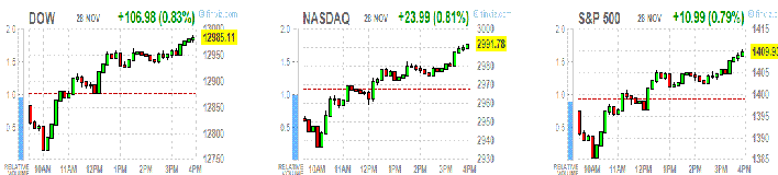 На момент закрытия:Dow 12,985.03 +106.90 +0.83%