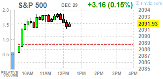 Фондовые индексы США около нулевой отметки, индекс S&P 500 намерен завершить год ростом третий раз подряд.