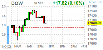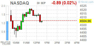 Основные фондовые индексы США около нуля. Рост акций EBay (ЕВАY) из-за выделения бизнеса PayPal в отдельную единицу нивелировался падением потребительского доверия в США в сентябре.