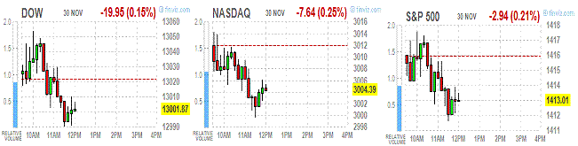 В начале сессии поддержку индексам оказывал оптимизм участников рынка относительно решения проблемы автоматического повышения налогов и снижения расходов, которую прозвали “фискальный обрыв”. Причиной оптимизма стали вчерашние слова спикера Палаты представителей Конгресса США Джон Бейнера и президента Обама, которые выразили уверенность в достижении компромисса по нависшей проблеме.