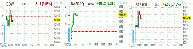 Индексы проводят последнюю торговую сессию 2012 года волатильно. В фокусе находятся переговоры по вопросу “бюджетного обрыва”.