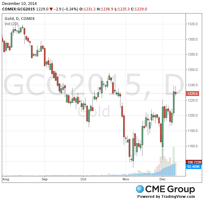 Стоимость февральского фьючерса на золото на COMEX сегодня снизилась до 1225.30 долларов за унцию.
