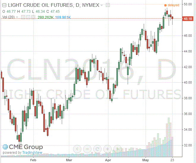 Стоимость июльских фьючерсов на американскую легкую нефть марки WTI (Light Sweet Crude Oil) упала до 48,18 доллара за баррель.