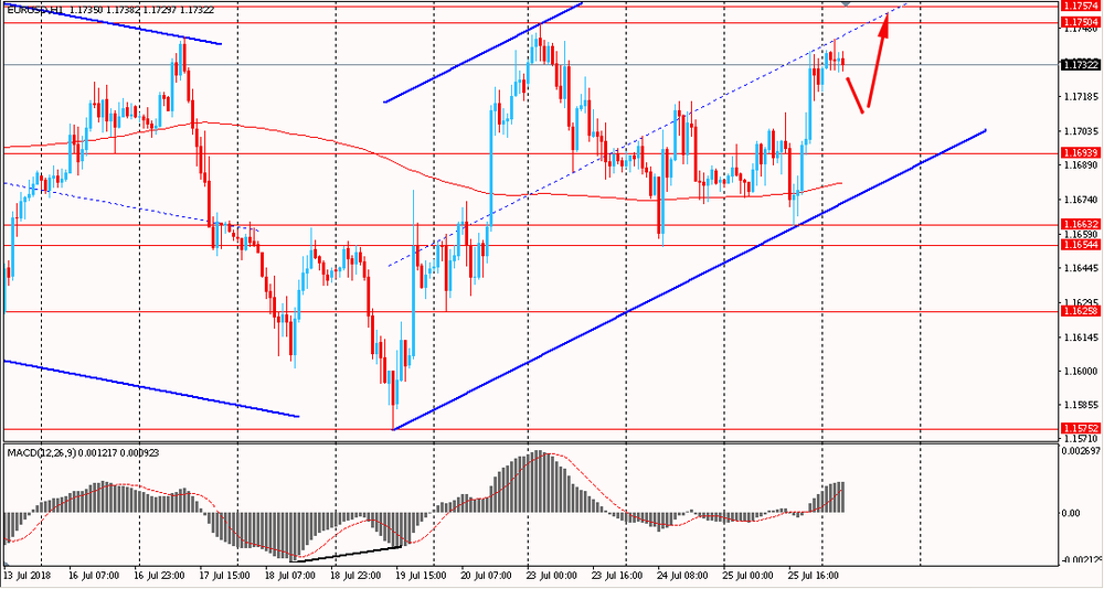 Пара EUR/USD сегодня утром выросла к $1.1740, продолжая вчерашний подъем. В среду пара, оттолкнувшись от наклонной линии поддержки канала от 19 июля, резко выросла и закрыла день на положительной территории. На данный момент единая валюта подошла к срединному уровню данного тренда и тестирует его. Евро по-прежнему находится выше линии скользящей средней MA 200 H1 и сохраняет бычий настрой.