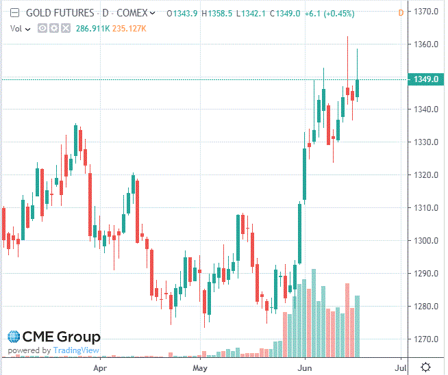 Стоимость августовского фьючерса на золото на COMEX выросла до $1349,00 за унцию.